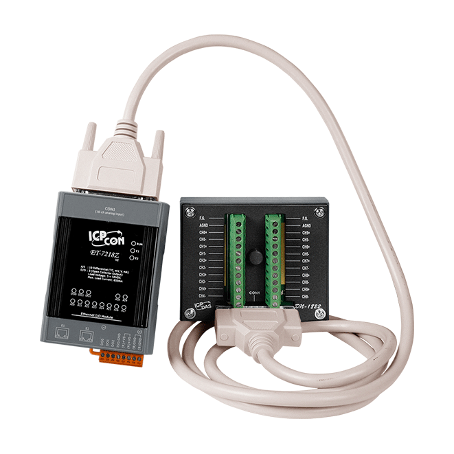 ET-7218Z/S2 is A 2-Port, Modbus TCP Module. 10 Channels Analog Input, 3 Channels Digital Output. Includes DN-1822 Daughterboard, CA-252518D Cable and 4PAPP-006-G Mounting Bracket.