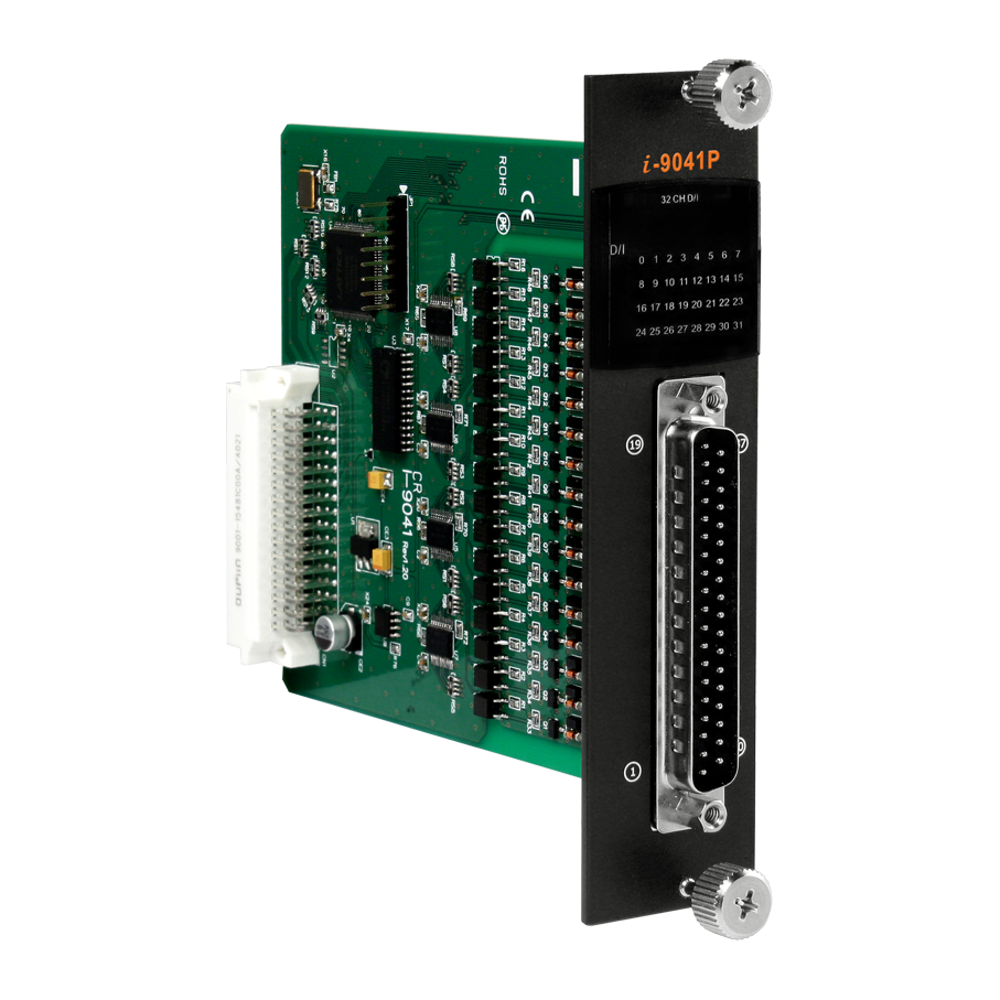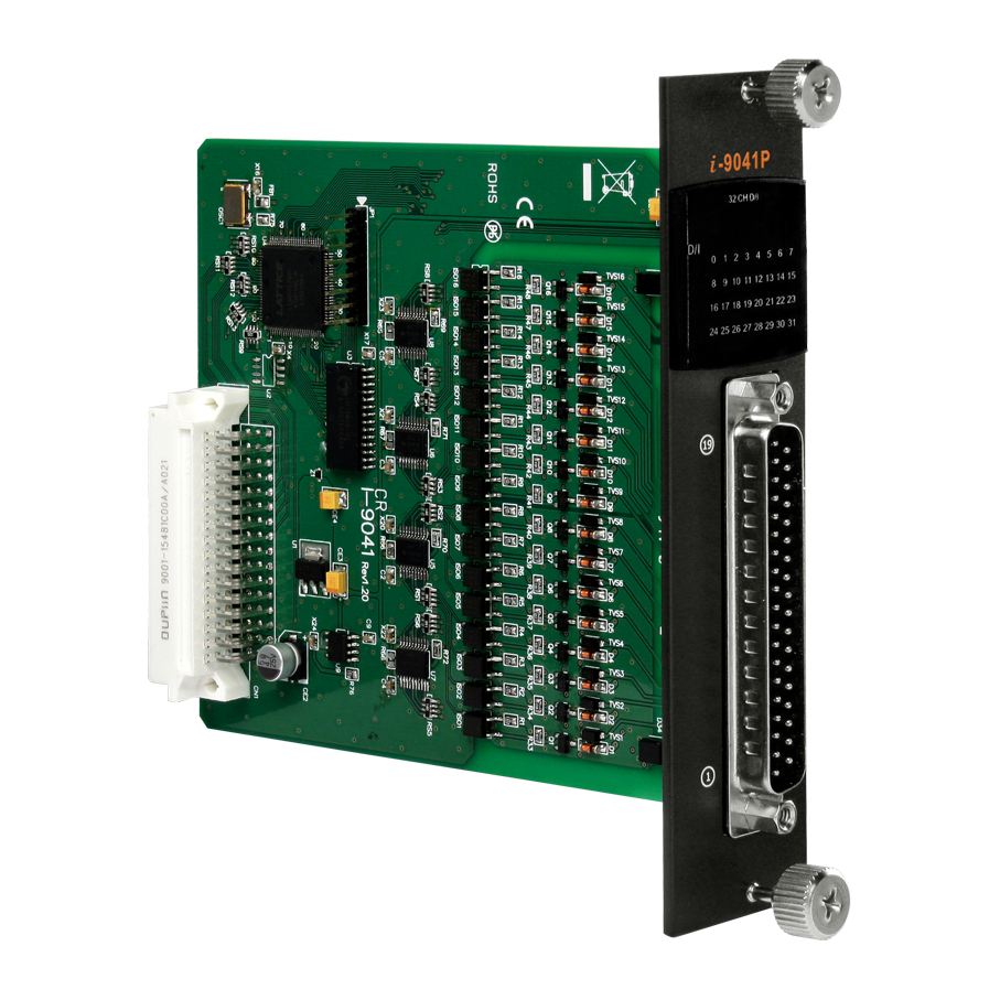 The I-9041P is a 32-channel sink-type digital output module. Each output channel has +10 VDC to +50 VDC signal compatibility, based on the external power supply. The module is equipped with 32 LED indicators are provided to display the on/off status of every channel. Short circuit protection, overvoltage protection and overload protection are also included.