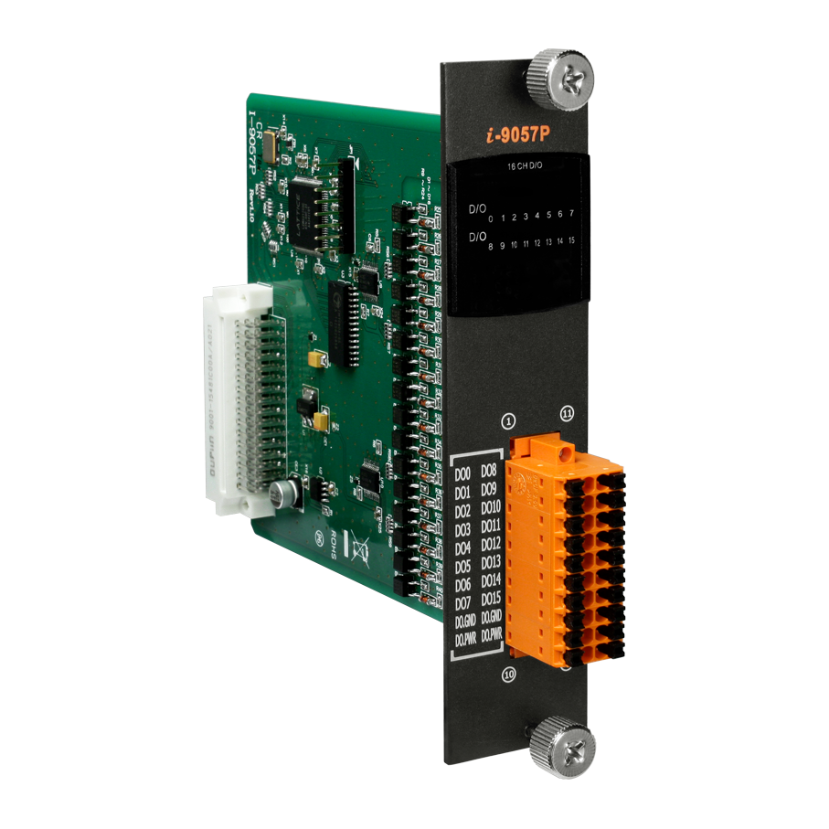 The I-9057P is equipped with 16 digital output channel with Photocouple isolation and supports sink-type output using an open collector. Designed with 16 LED indicators to monitor the status of digital output channels. The I-9057P integrates overcurrent, over-voltage and short-circuits protections for industrial use. 4 kV ESD protection and 3750 Vrms intra-module isolation are also provided as standard.