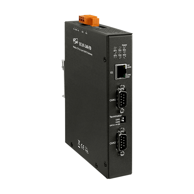 ECAN-240-FD enables integration of CAN devices with IoT networks. The ECAN-240-FD is a Modbus TCP to 2-port CAN FD (CAN with Flexible Data-Rate) Gateway. It communicates over Ethernet with Modbus TCP protocol and has two CAN bus interfaces for connecting to CAN equipment.