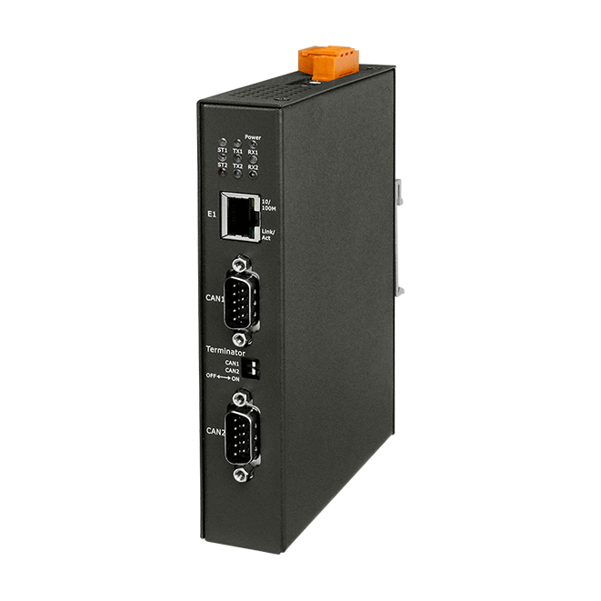 Modbus TCP to 2-port CAN FD Gateway. Compatible with the ISO 11898-2, CAN specification 2.0 A/B and FD. Has Built-in DIP-switch to enable/disable the terminal resistor.