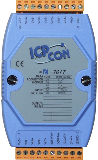 I-7017 is a cost-effective solution for a wide range of valuable industrial control signals and systems. The DCON utility can help users to configure and test the I-7017 Analog Input Modules. Plenty of library functions and demo programs are provided to let users develop programs easily under Windows, Linux and DOS operating systems. Users may mount the modules on a DIN rail, panel or wall. Modules have a screw-terminal block to connect to the signals. I-7017 comes with FREE EZ Data Logger Software. I-7017 can be used with LabView and SCADA software.