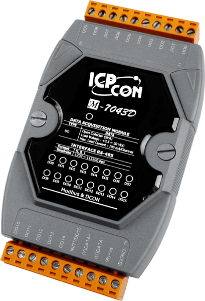 The M-7043D offers 16 digital output channels, each of which are non-isolated and support sink-type output using an open collector. It also comes with an LED display for indication of the module status. There are also options to enable both power-on and safe values. They come with configurable power-on value settings and configurable safe value settings. They can be used with our free EZ Data Logger software for data logging and monitoring applications.