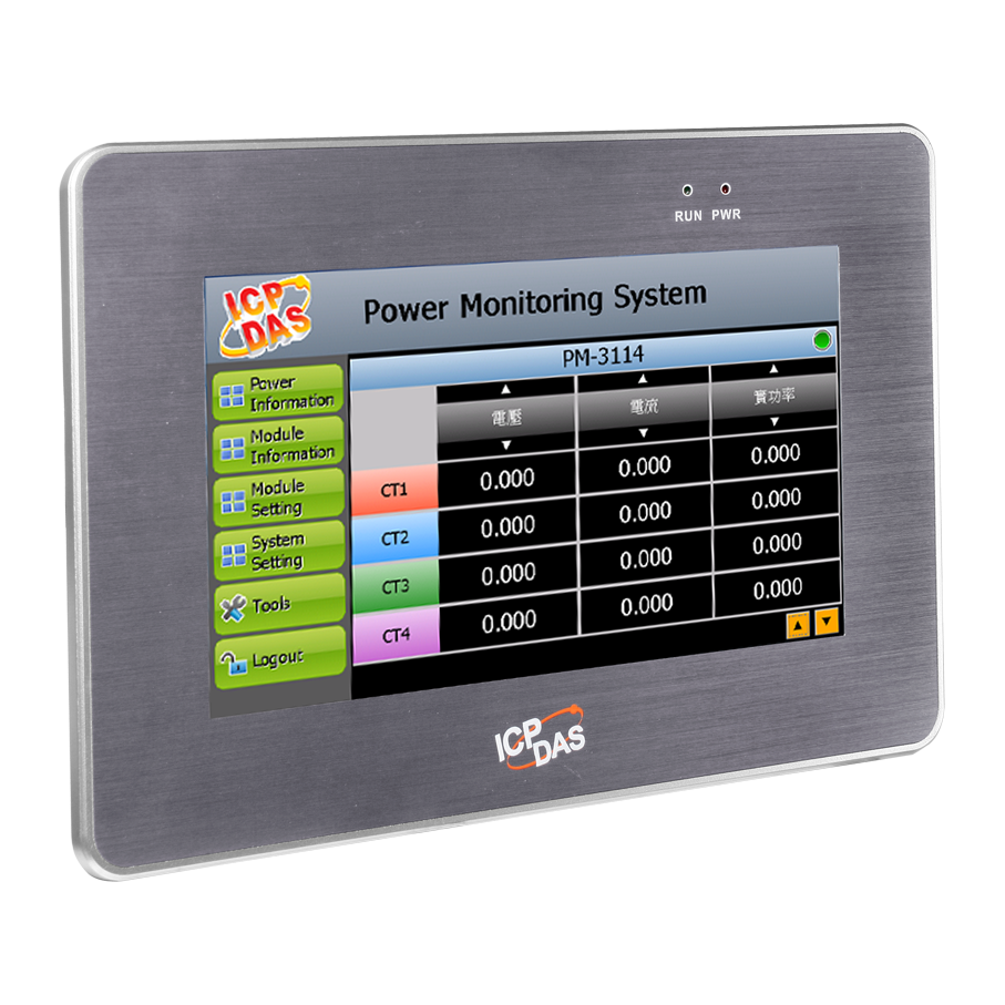 - Support at most 24 ICP DAS Modbus TCP/RTU Power Meters (with maximum 16 Modbus TCP Power Meters), and 8 Modbus I/O modules