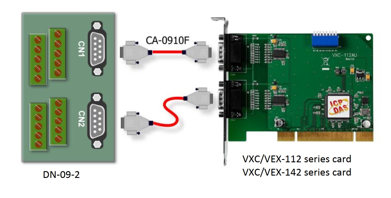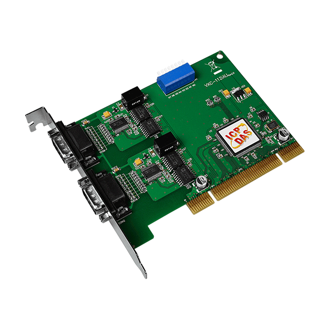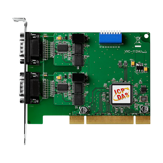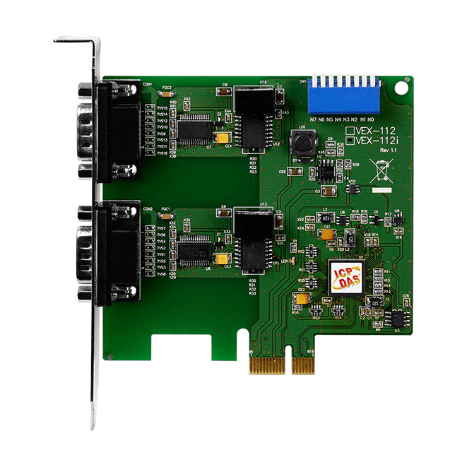 The VXC-112 series card provides 2 RS-232 serial ports. It is equipped with a 128-byte hardware FIFO for each port, supports for speed up to 115200 bps and supports full-duplex communication.
