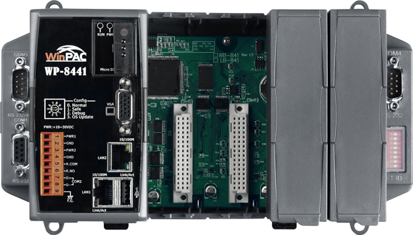 Its operating system,Windows CE 5.0, has many advantages, including hard real-time capability, small core size, fast boot speed, interrupt handling at a deeper level, achievable deterministic control and low cost. Using Windows CE 5.0 with the WinPAC-8441 gives it the ability to run PC-based Control software such as Visual Basic.NET, Visual C#, Embedded Visual C++, SCADA software, Soft PLC, etc.