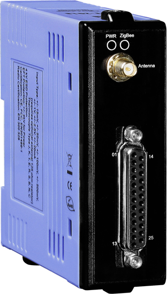 ZigBee Wireless 8-channel Analog Input Module with High Voltage Protection (Long Range). Wireless Transmission Range up to 700 meters. Supports DCON and Modbus RTU Protocols and has an operating temperature of -25 °C ~ +75 °C (-13F ~ 167F).